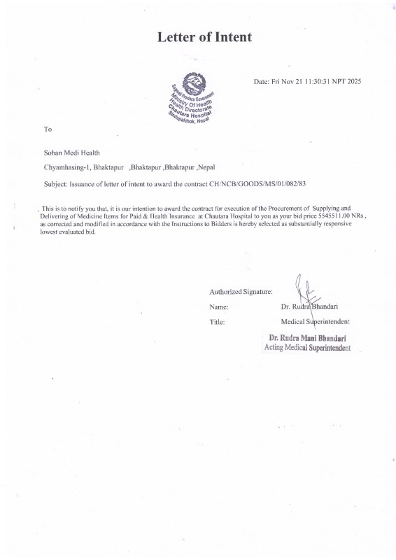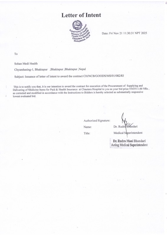 सम्झौता गर्न आउने सम्वन्धी सूचना (सोहन मेडिहेल्थ र बंगलामुखी मेडिसिन सप्लायर्स प्रा.लि.)